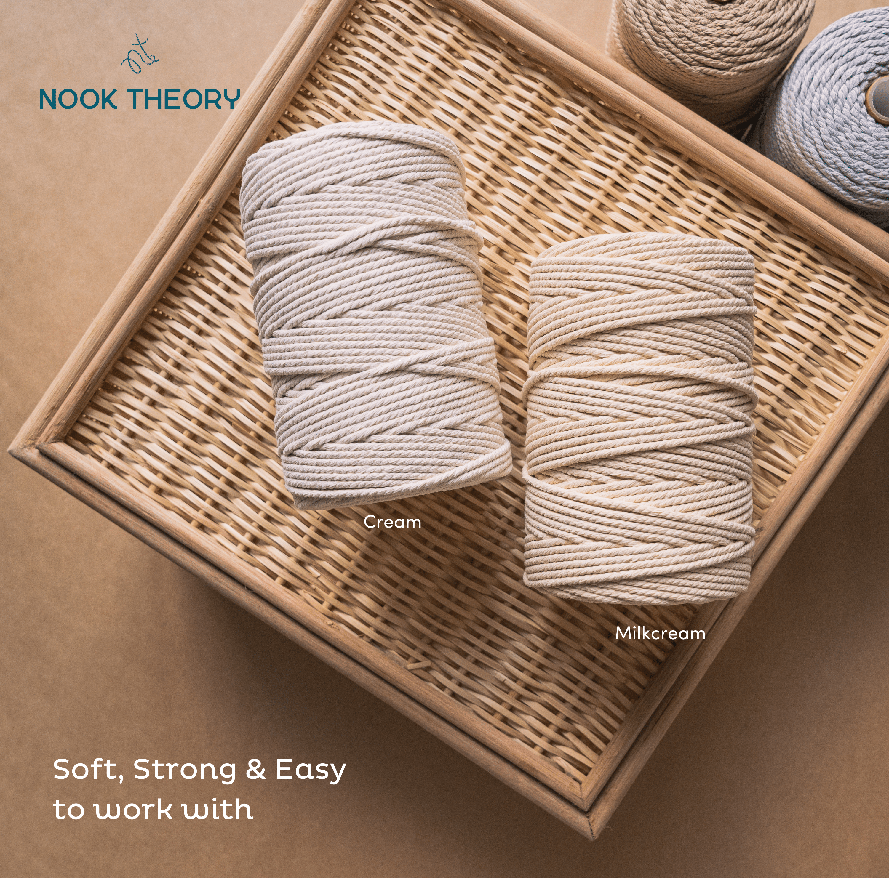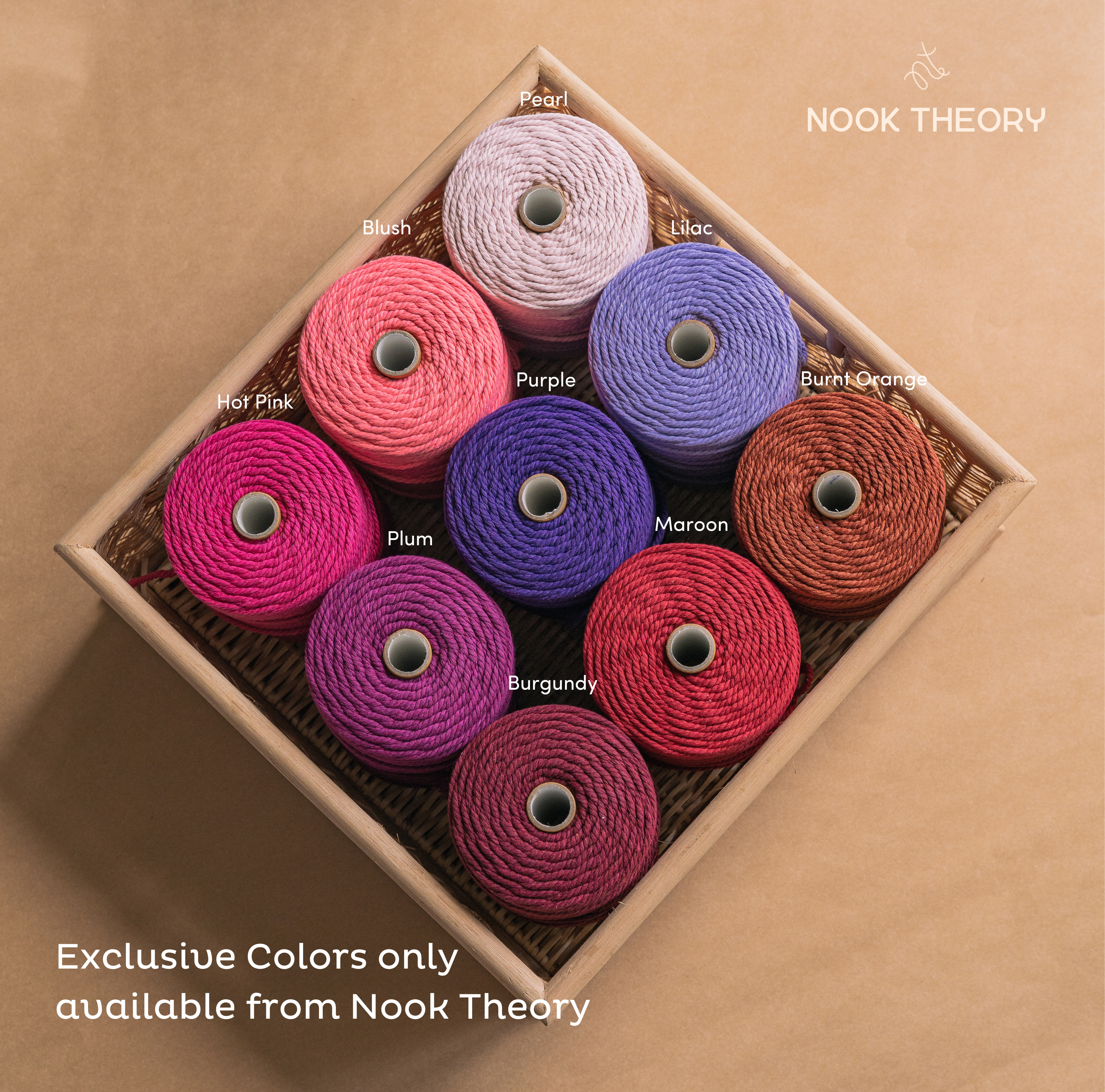 Nook Theory is a trusted brand in the macrame community, offering high-quality macrame cords that are designed to elevate your craft. Our cords are made from premium recycled cotton and are carefully crafted to ensure strength, durability, and a beautiful finish.