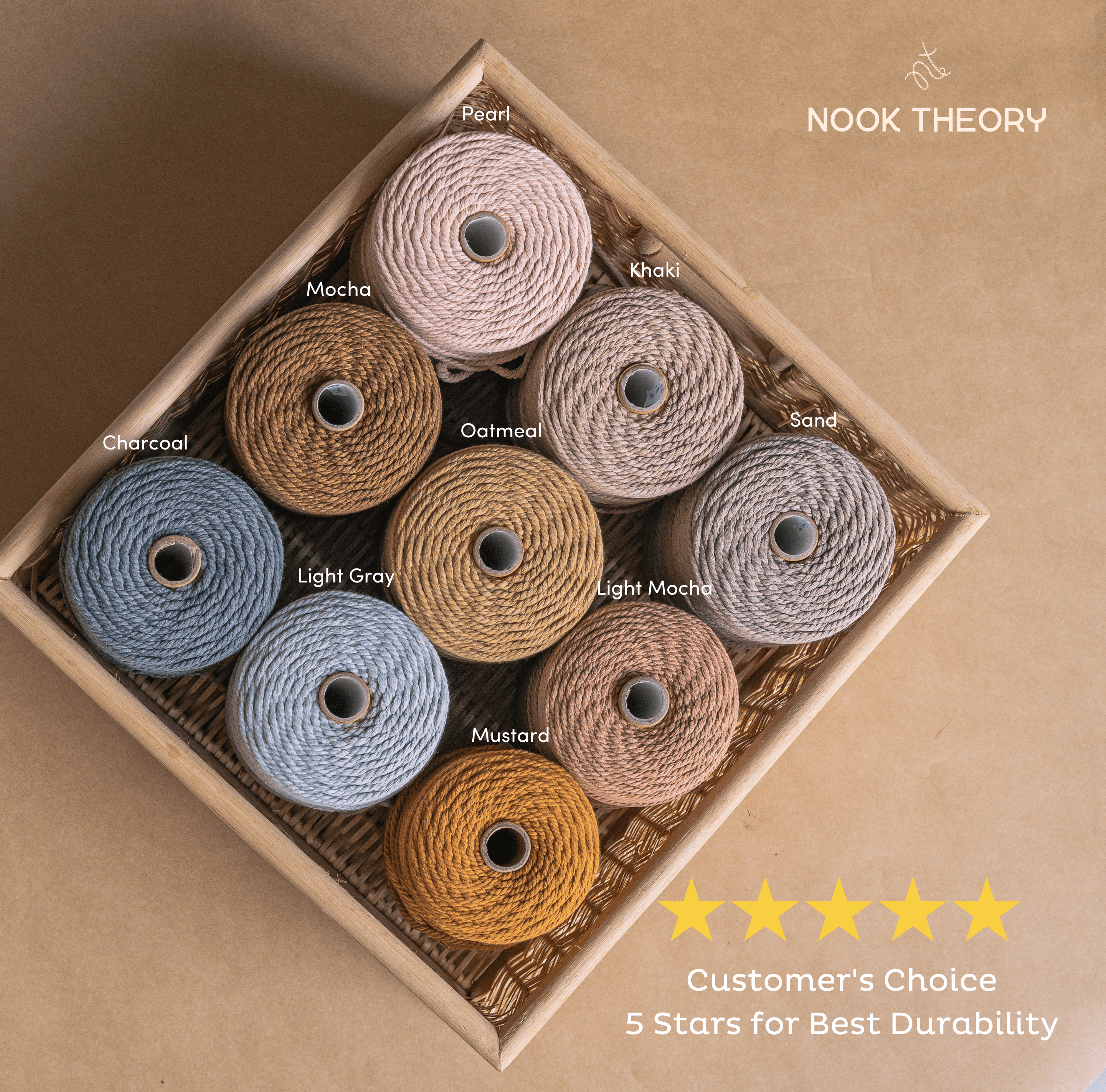 Nook Theory is a trusted brand in the macrame community, offering high-quality macrame cords that are designed to elevate your craft. Our cords are made from premium recycled cotton and are carefully crafted to ensure strength, durability, and a beautiful finish.