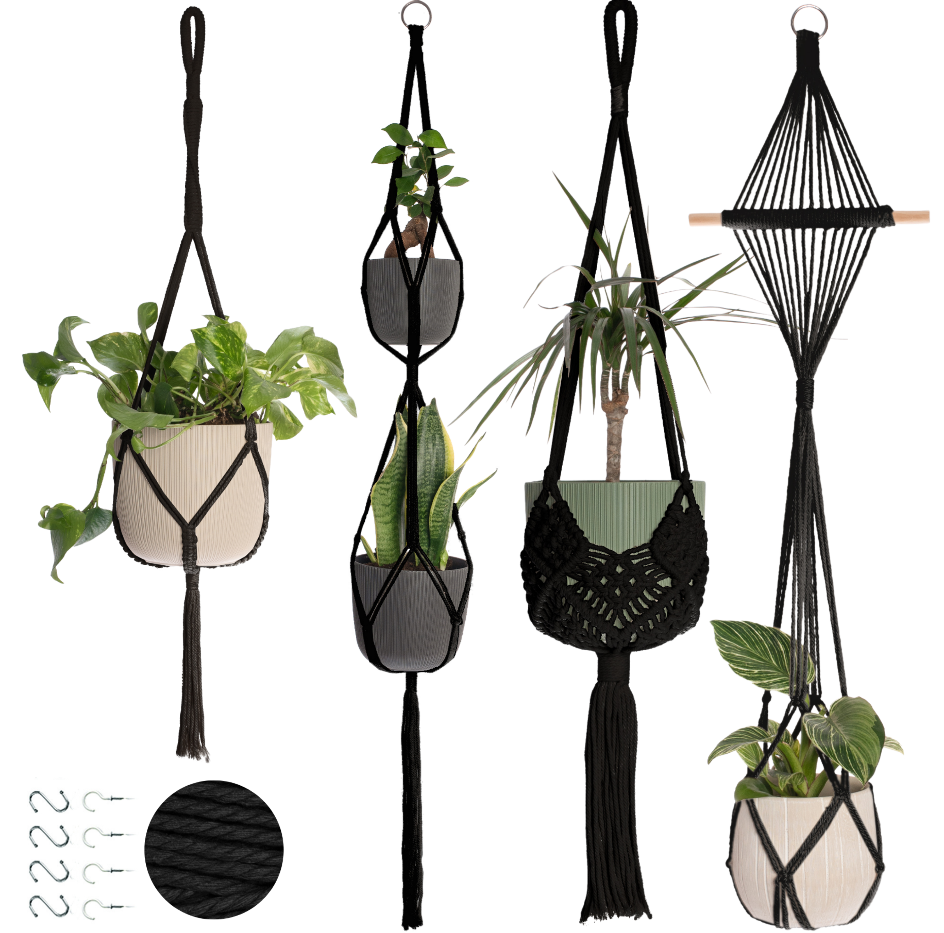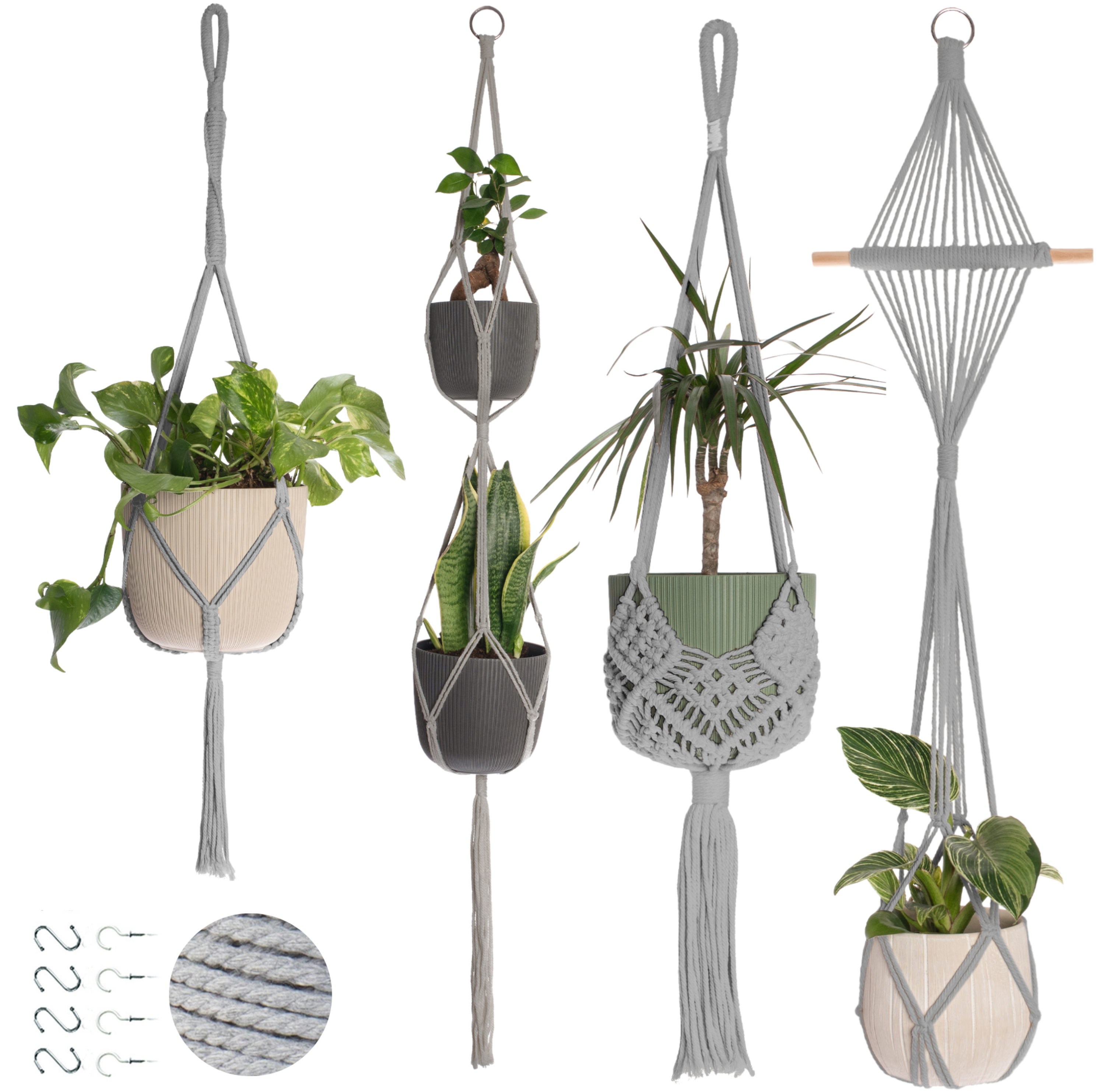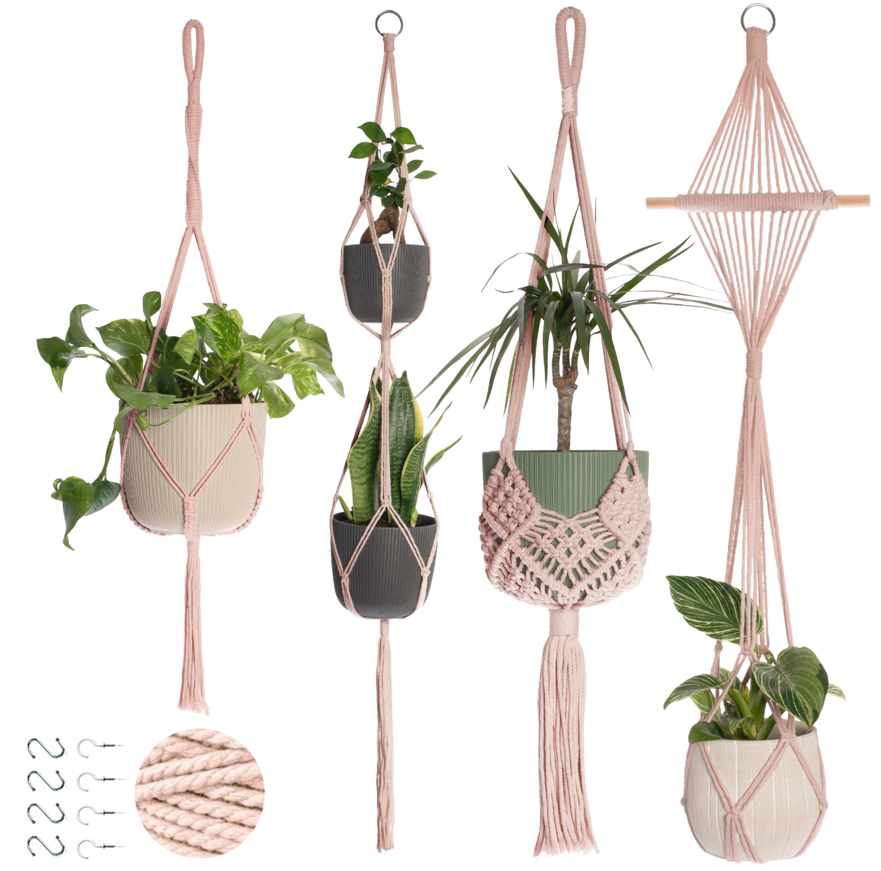 The plant hanger set works great with many different plants, pot sizes and types, rooms, and settings.