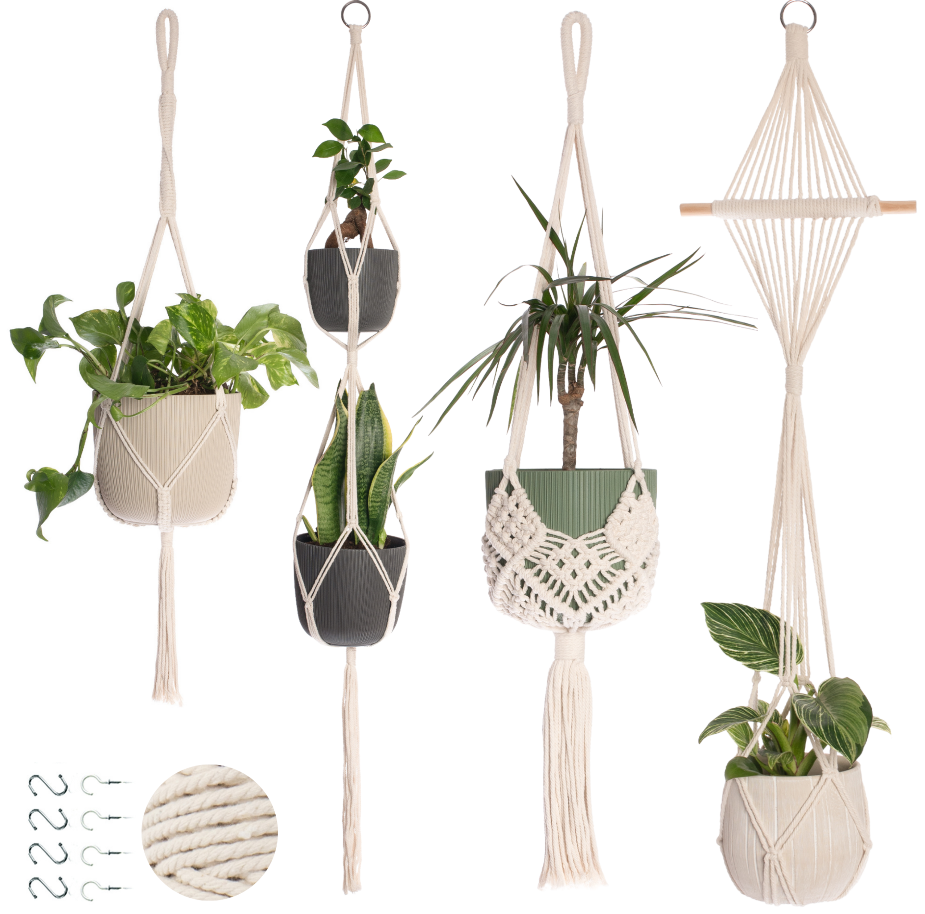 Our 4-Pack Hanging Planters are created for their exquisite designs which are carefully curated by us – Basket weaved Hanger (32’’ long), Diamond-shaped Hanger (41’’ long), Twirl Hanger (41’’ long) and Duo Hanger (48’’ long).