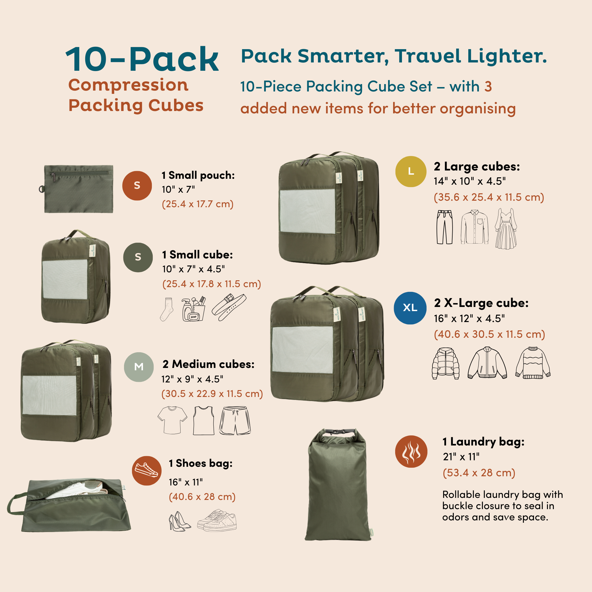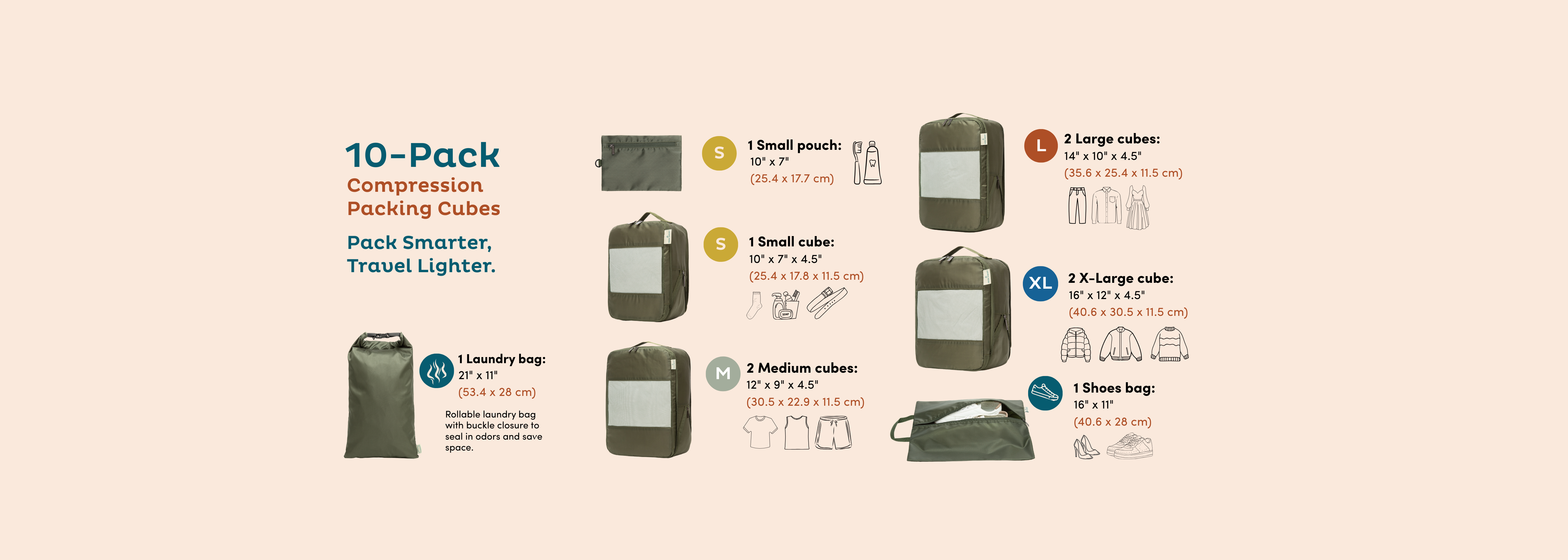 Your Ultimate Travel Organizer - 6 & 10 lightweight, compressible packing cubes in assorted sizes to maximize space and keep essentials neat. Perfect for suitcase organization, weekend getaways, long trips, or daily use.