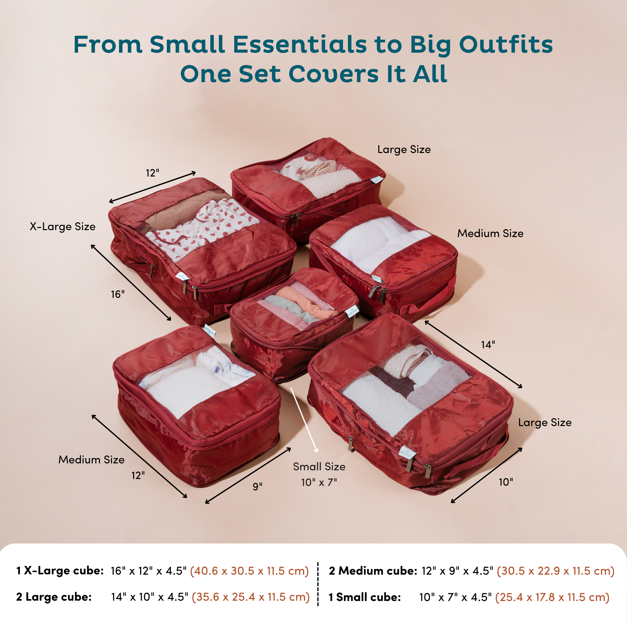 Built with the perfect balance of durability, minimalism, and function, these compressible packing cubes keep your belongings organized while saving valuable space—whether at home, in transit, or during your travels.