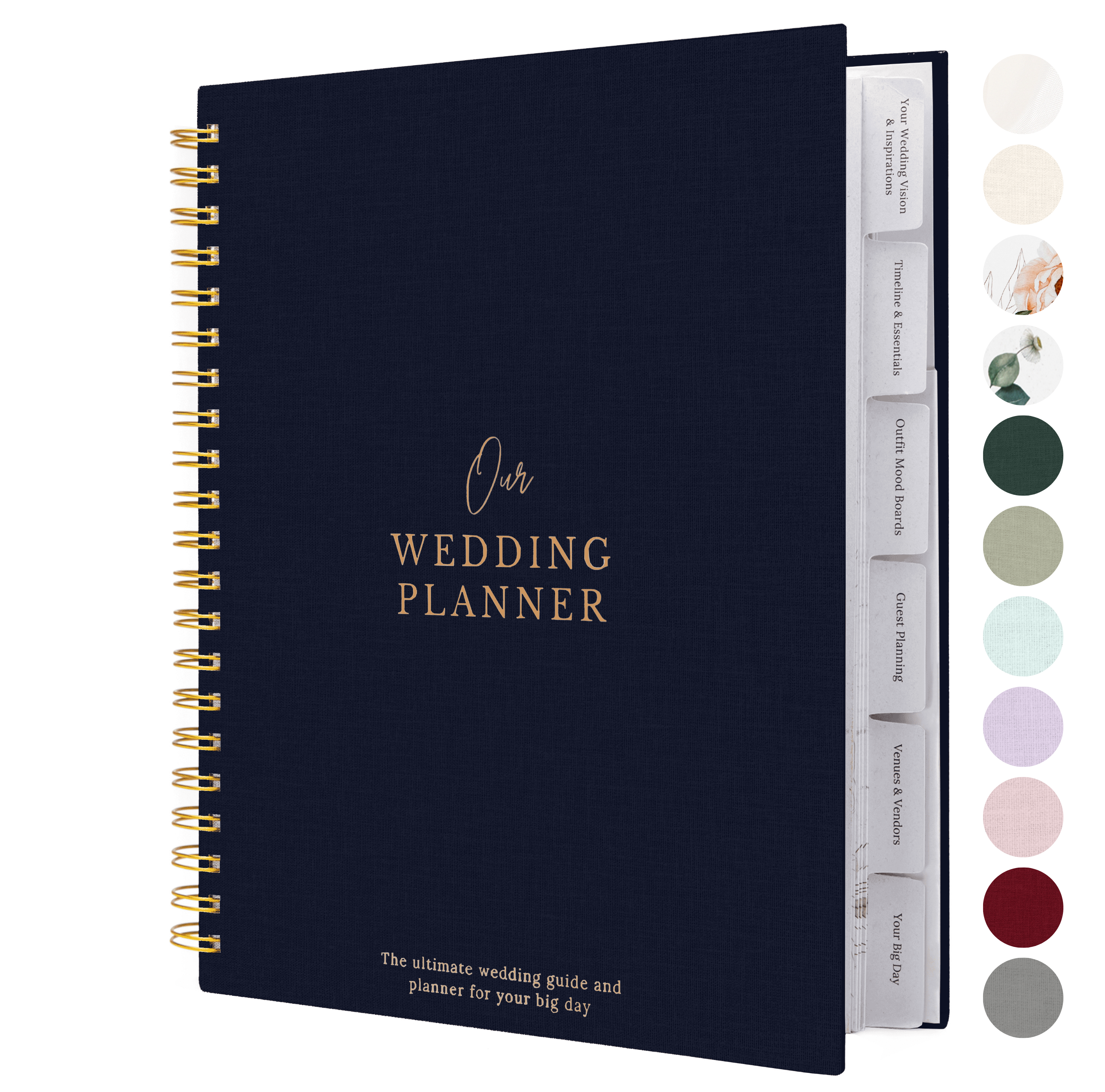 144 pages of quality wedding planner book to help you plan your perfect day in a breeze. Large 9”x11” with elegant hardcover plus gold foil stamping. High-quality 153 gsm smudge-free paper, no bleed-through while writing.