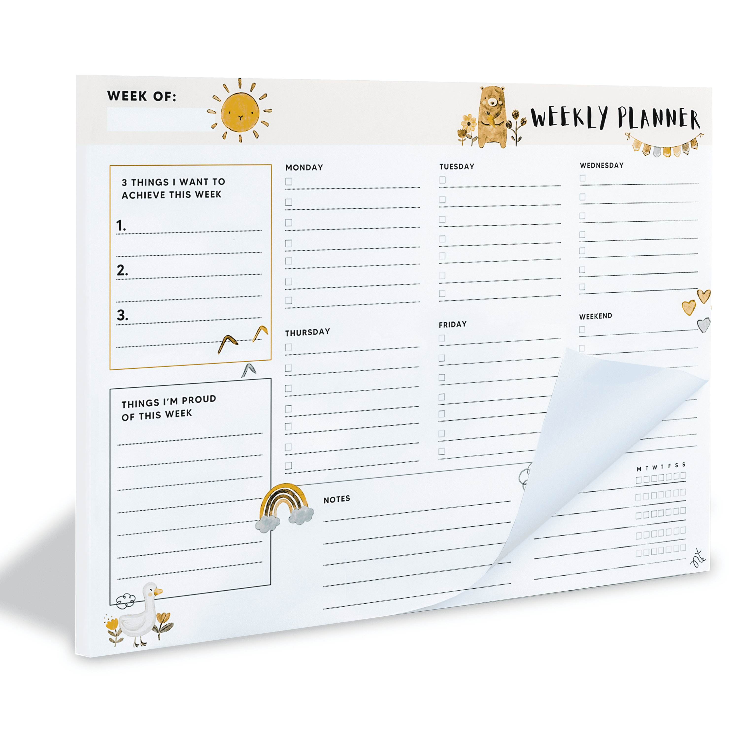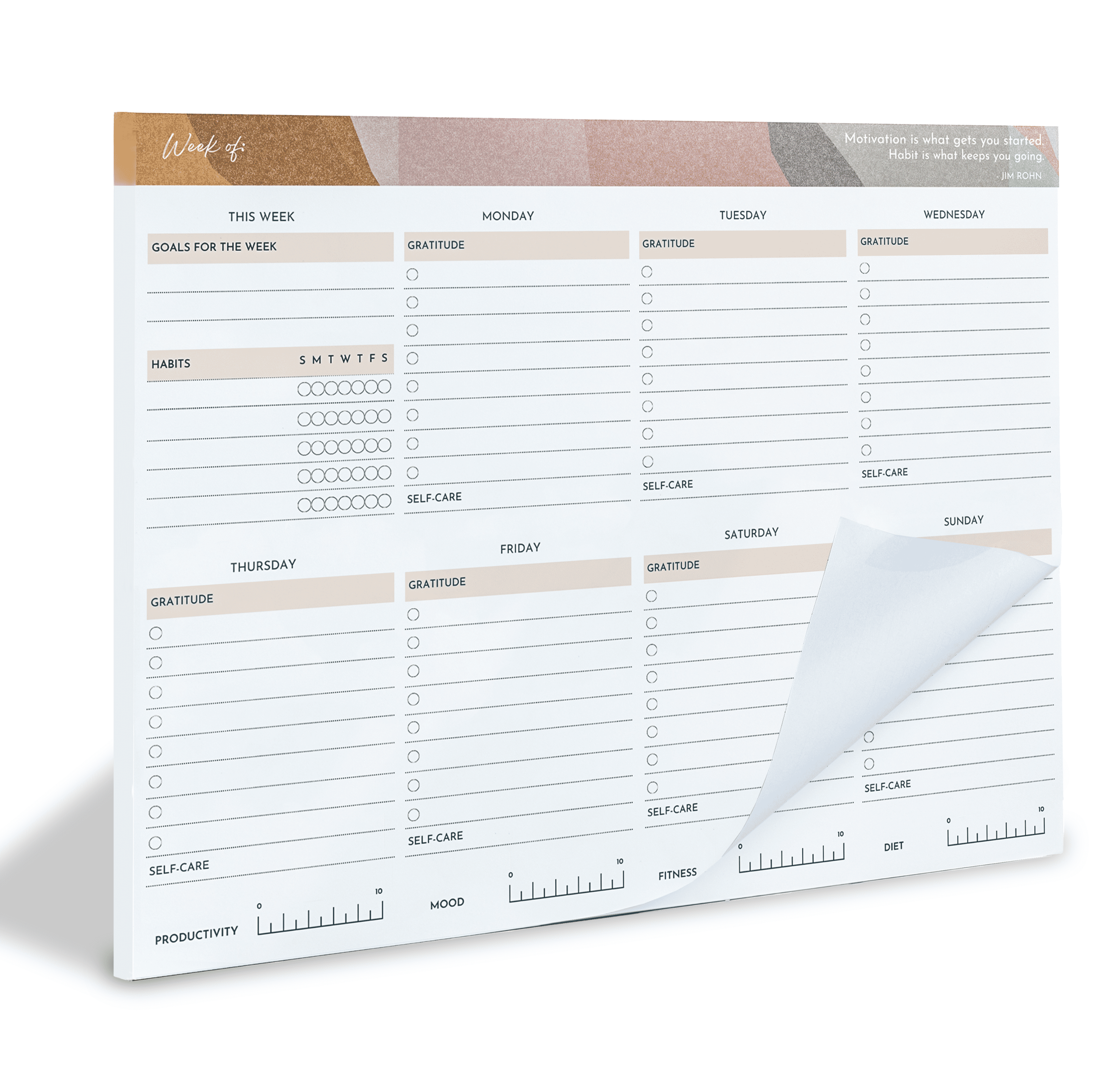 For some designs, immerse yourself in the motivational journey with a carefully curated positivity quote at the top of each page, providing a daily dose of inspiration. Crafted to bring intentionality to your week, these pads empower you to set purposeful goals and track your progress.