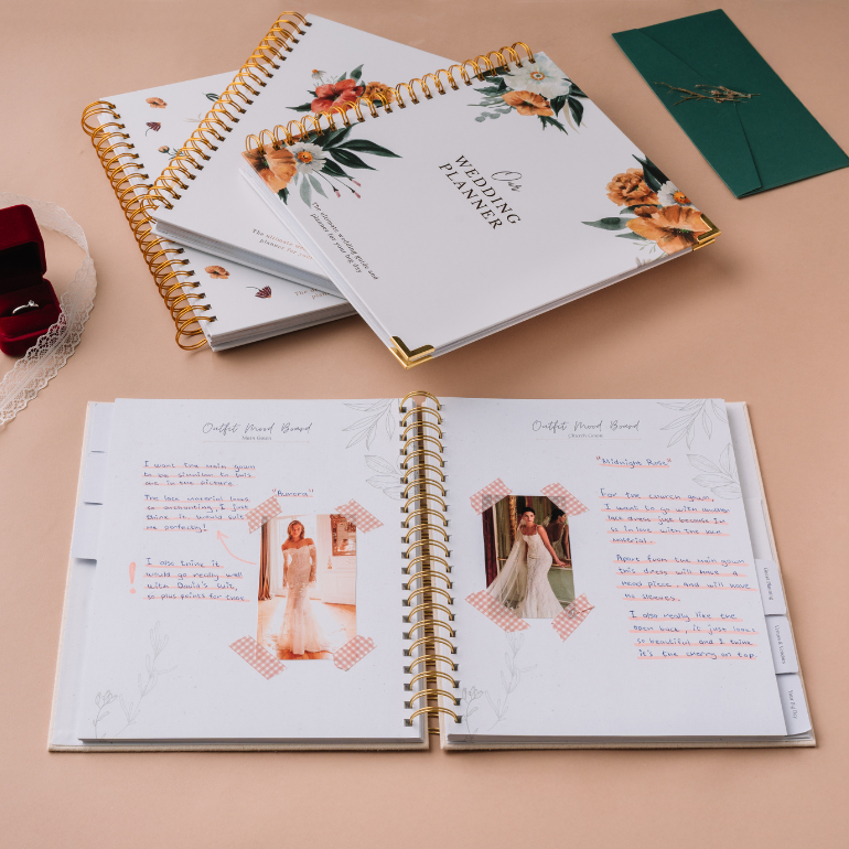 Floral Bohemian edition with gold foil stamping and side protector: designed to last a lifetime, not just for planning but as a cherished keepsake.