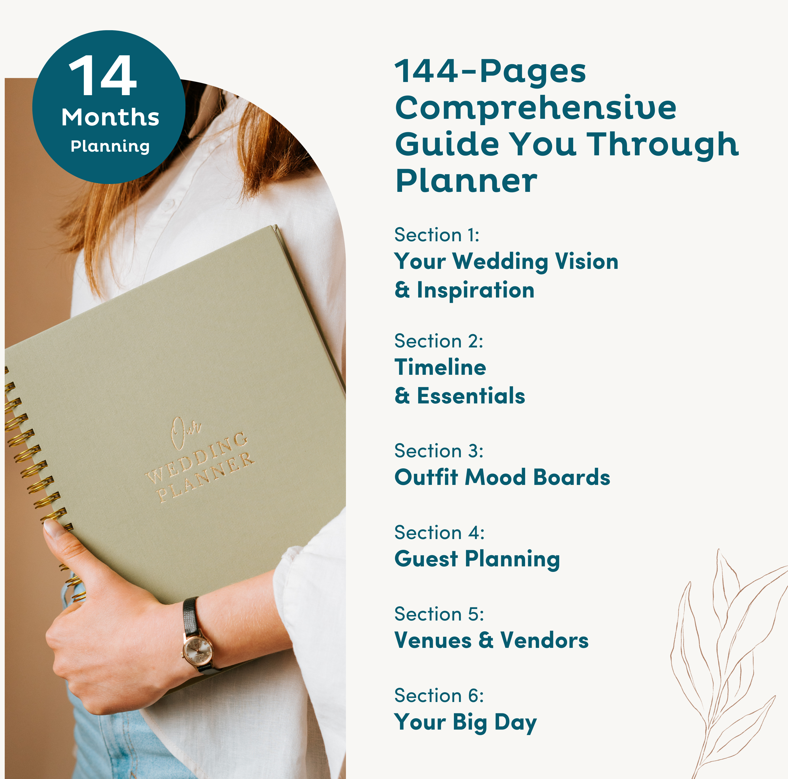 Our planner is complete with checklists for each milestone plus 14 months of calendars to count down with you every step of the way. Having the Nook Theory Wedding Planner is as if having a private wedding consultant with you, but even better. From the important things, like selecting a venue, to all the tiny little details that can be easily forgotten and often missed out. It is packed full of handy hints and tips, it will almost definitely remind you of things you didn't realize were needed.
