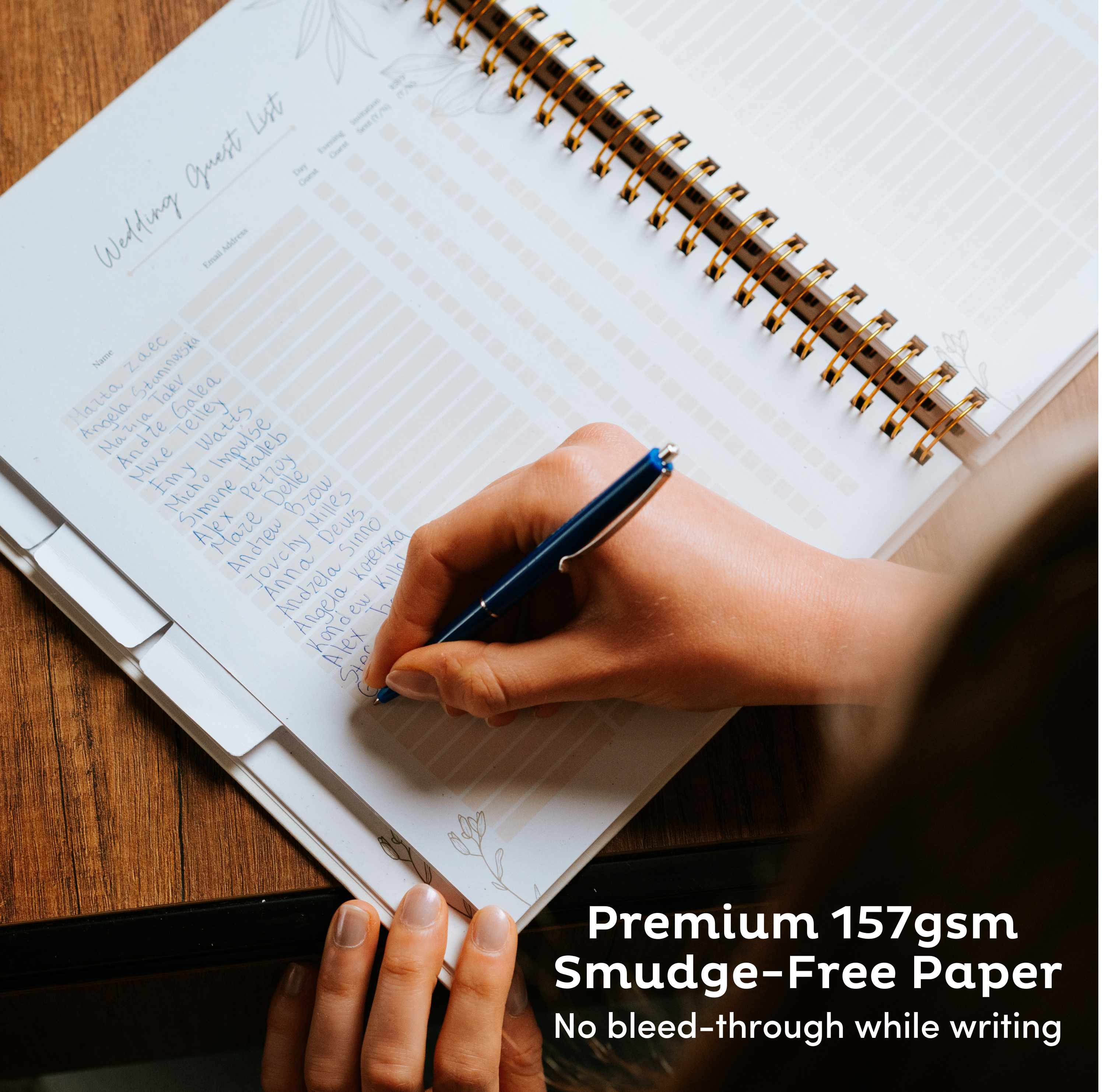 Elegant Wedding Book Planner - Our wedding planning book and organizer for the bride features 144 smudge-free pages, a stylish 9"x11" hardcover with gold foil, and easy-to-use tabs, simplifying your special day with elegance and ease.