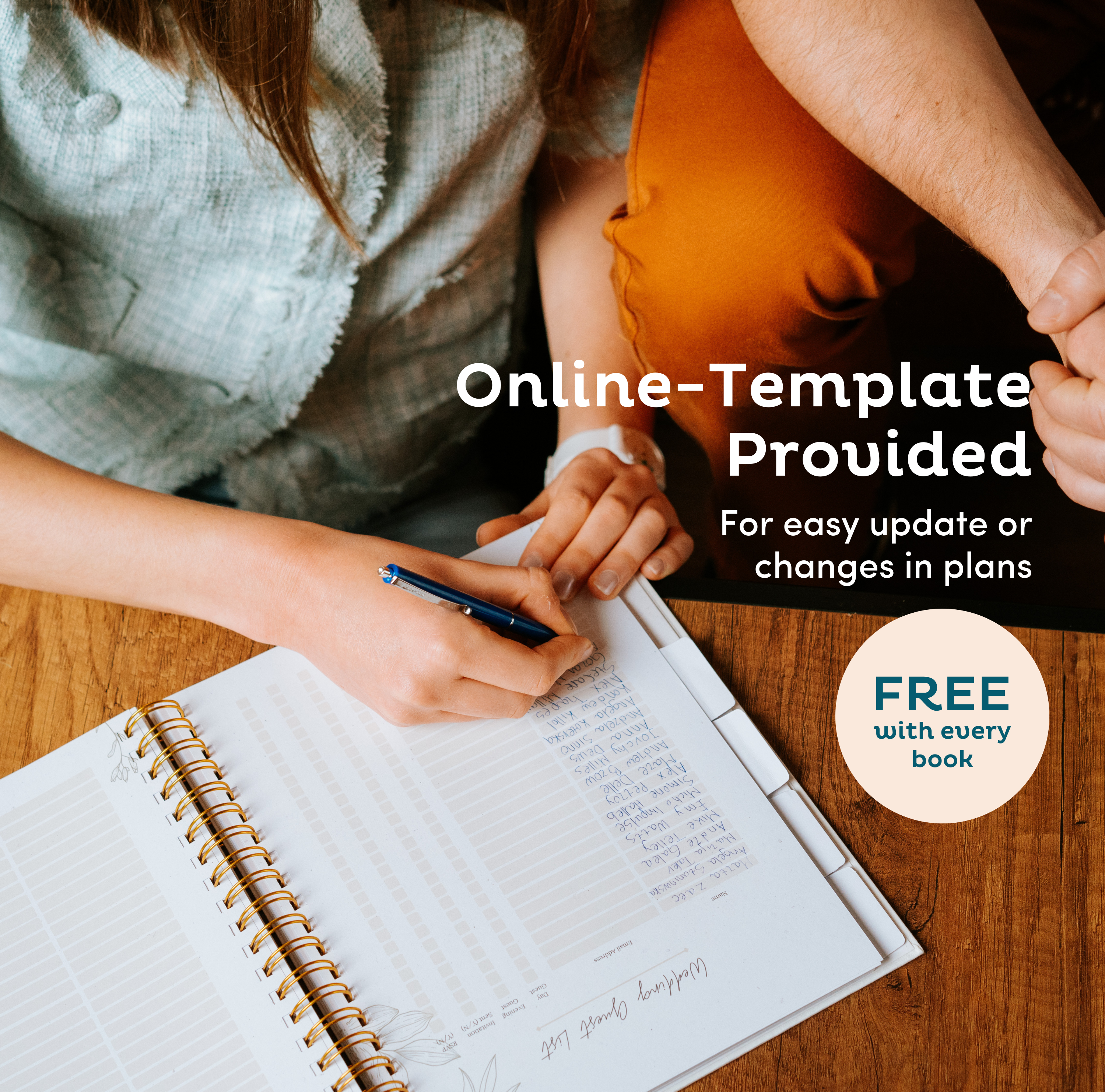 Effortless Planning with E-Templates: Simplify wedding planners for the bride preparation with curated e-templates for budget planning, guest lists, gift lists, and table arrangements, making the process more efficient. Perfect wedding gifts!