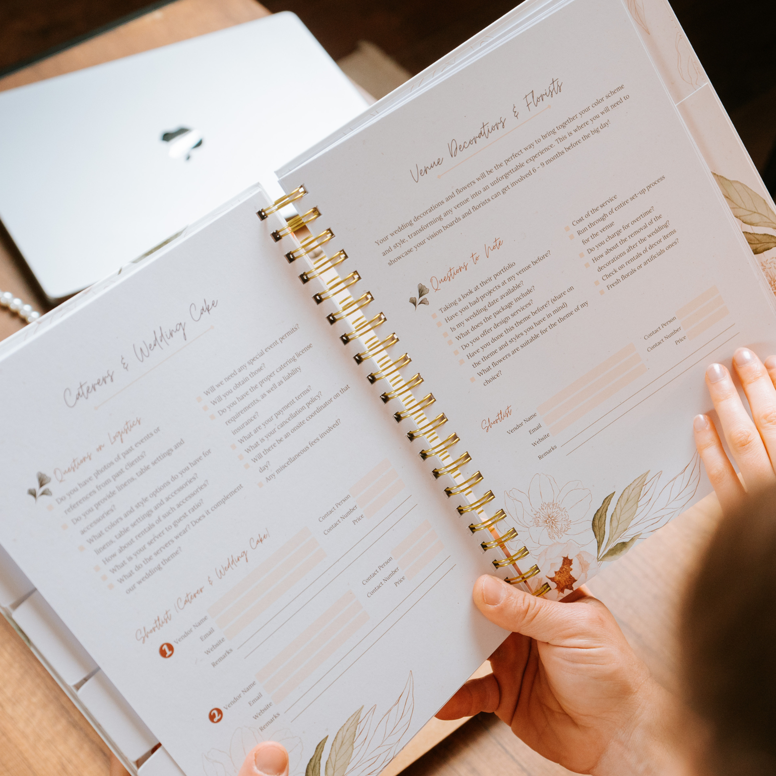 Our planner is complete with checklists for each milestone plus 14 months of calendars to count down with you every step of the way. Having the Nook Theory Wedding Planner is as if having a private wedding consultant with you, but even better. From the important things, like selecting a venue, to all the tiny little details that can be easily forgotten and often missed out. It is packed full of handy hints and tips, it will almost definitely remind you of things you didn't realize were needed.