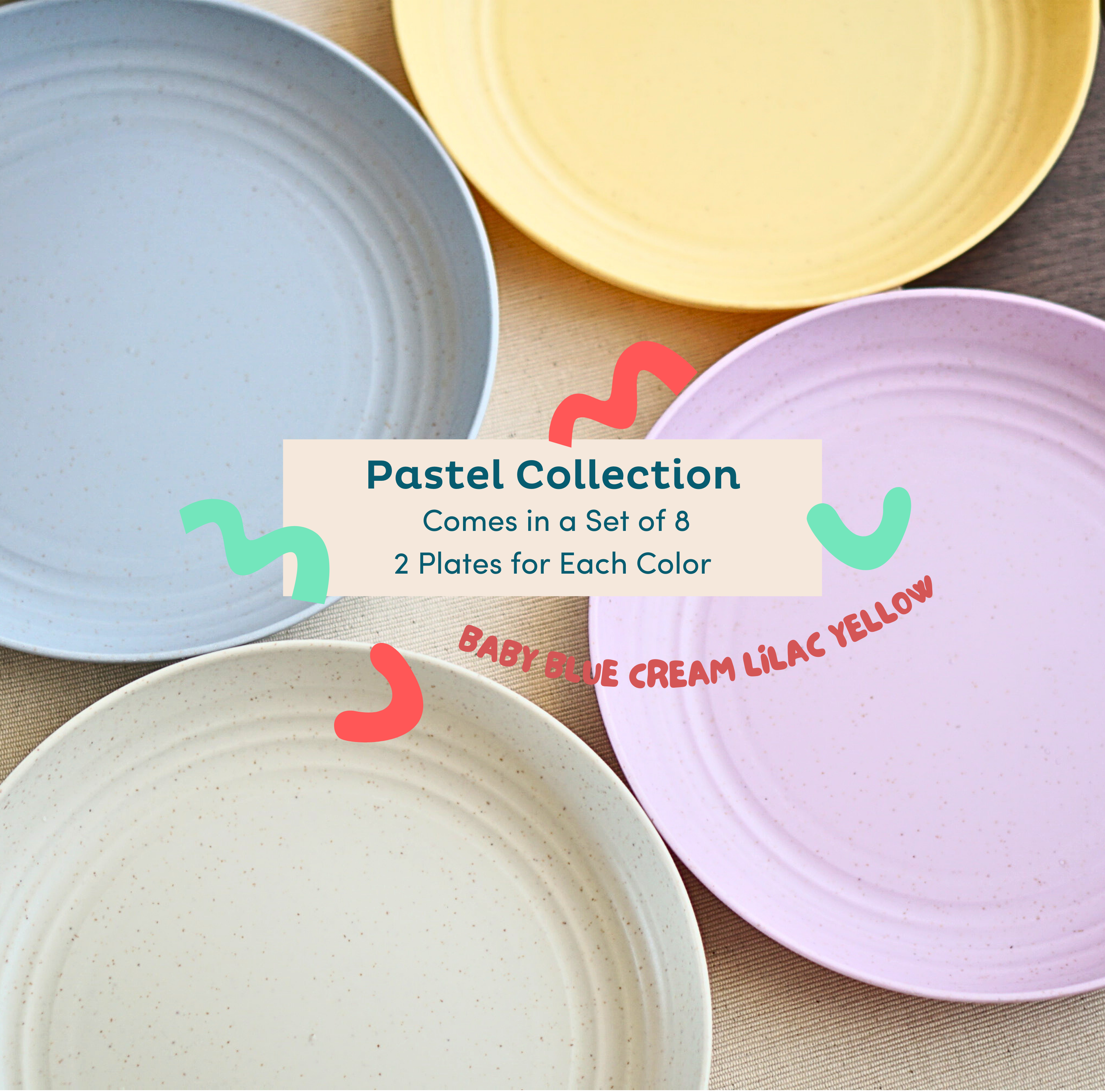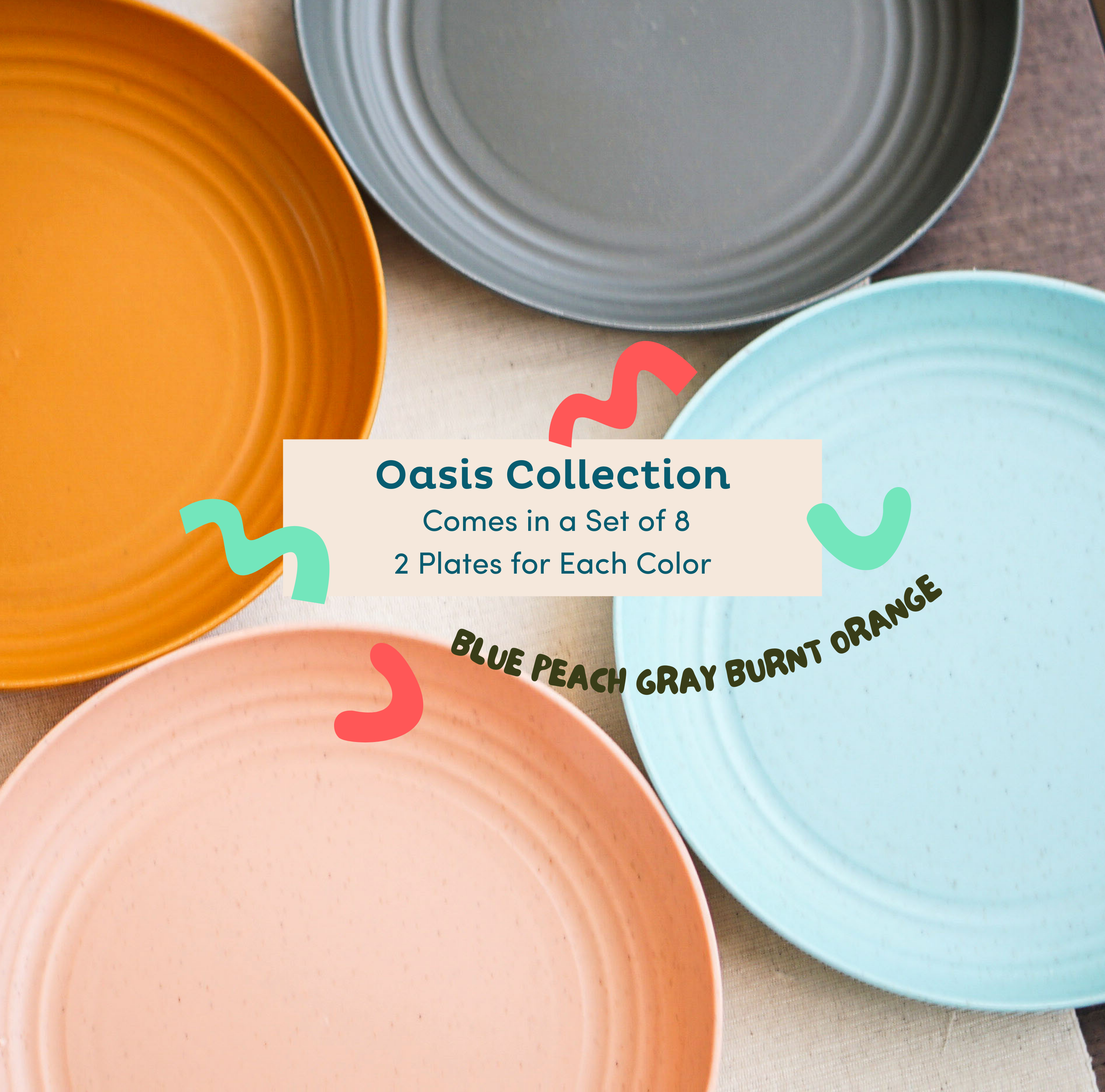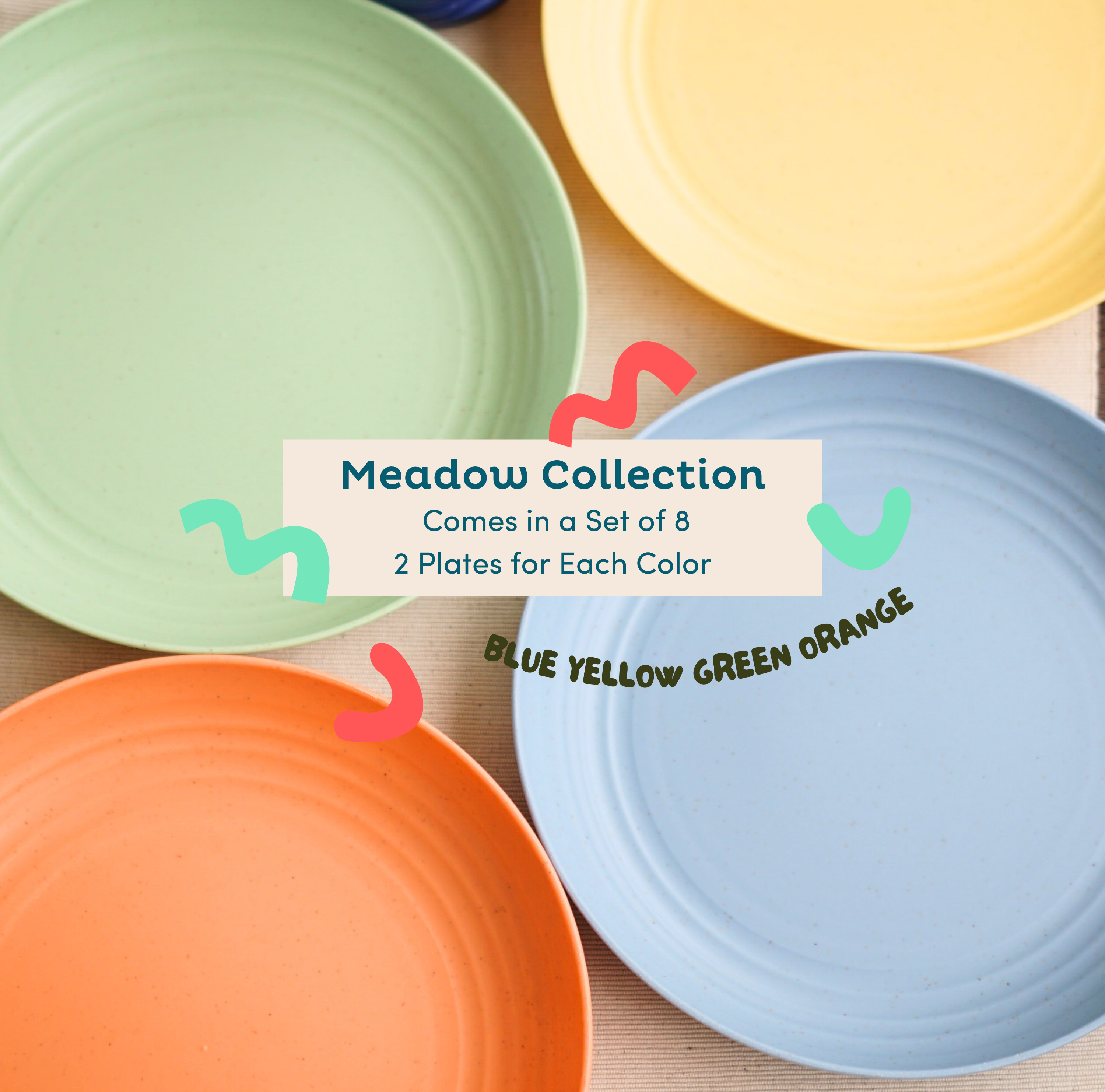 Elevate your table setting with our colorful wheat straw plates. Our dinner plates set of 8 comes in four exciting colors in each variation. Add a splash of fun to your meals, especially with the little ones!