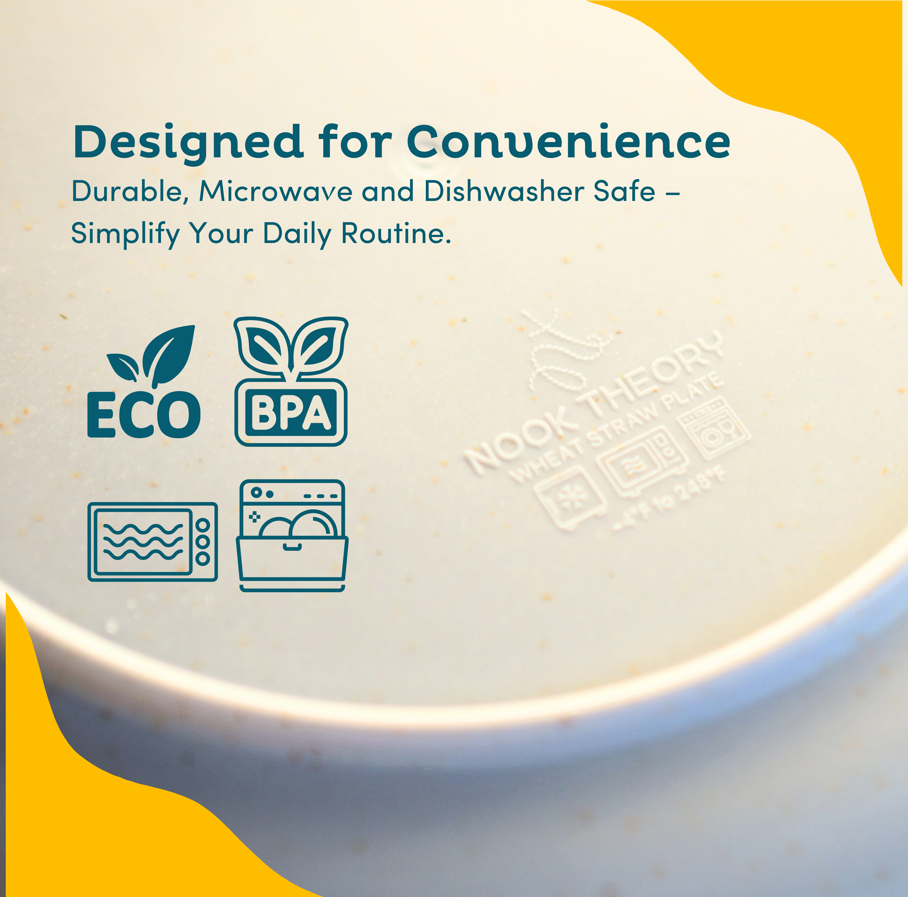 Experience dining ease with Nook Theory's Wheat Straw Plates –microwavable and dishwasher safe.Transition seamlessly from meal prep to cleanup, adding unparalleled convenience to your dining routine. Elevate your table with plates that effortlessly blend style, functionality, and adaptability.