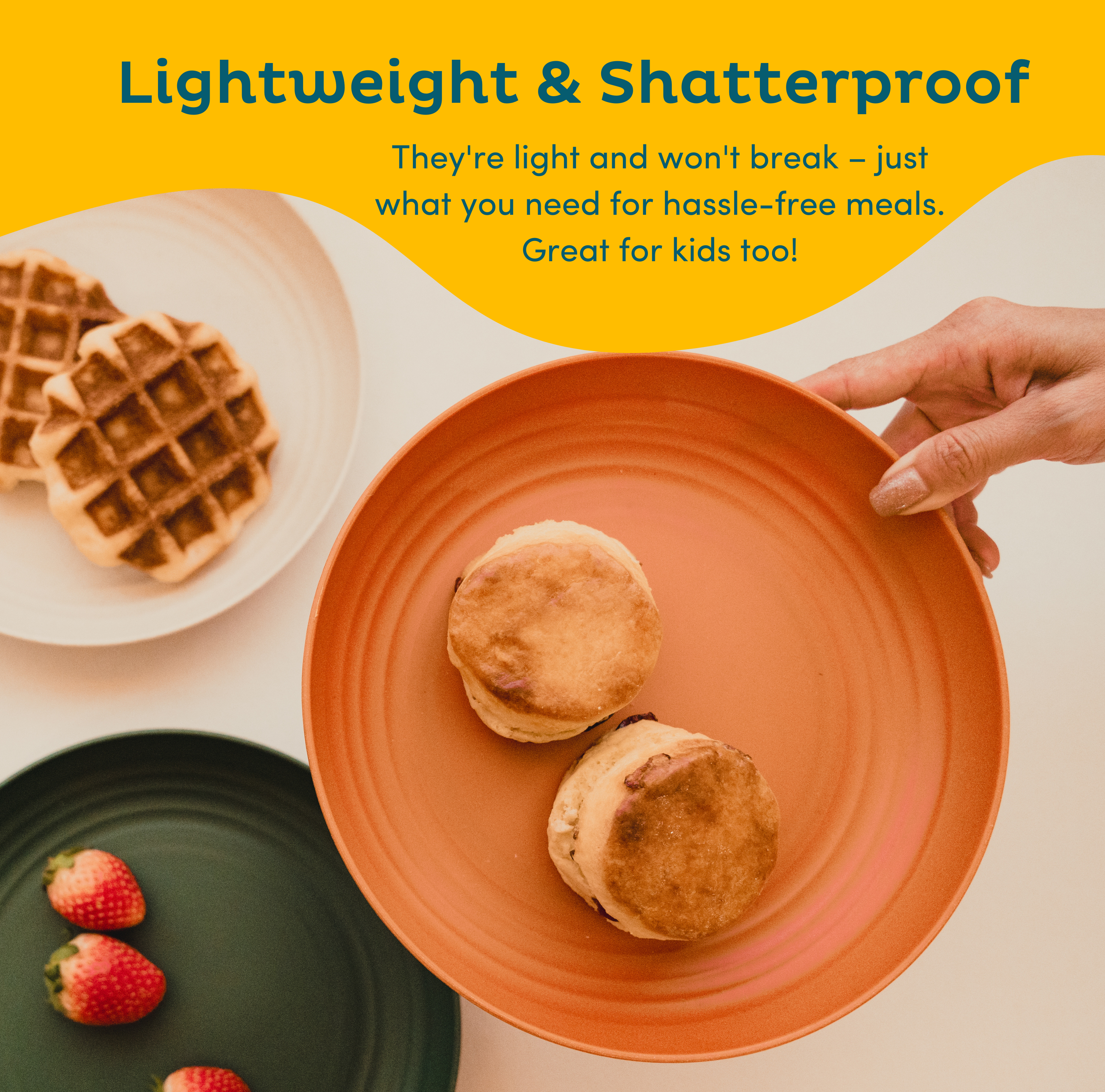 Our wheat straw plates are made from wheat straw fibers and food-grade PP which are 100% BPA free, non-toxic, odorless, providing a sustainable and eco-friendly alternative to traditional plastic plates. - Sturdy, Unbreakable, Lightweight