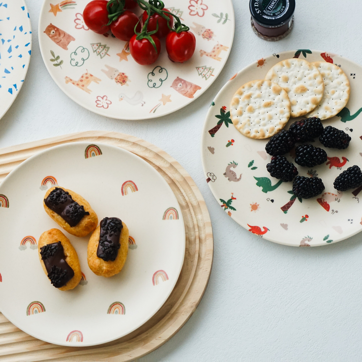 Our plates are designed with the intention to combine form and functionality, moving away from typical plain plates in the market. Made of sustainable bamboo fibers that are non-toxic, they are BPA-free, Phthalates free, PVC-free, and lead-free.