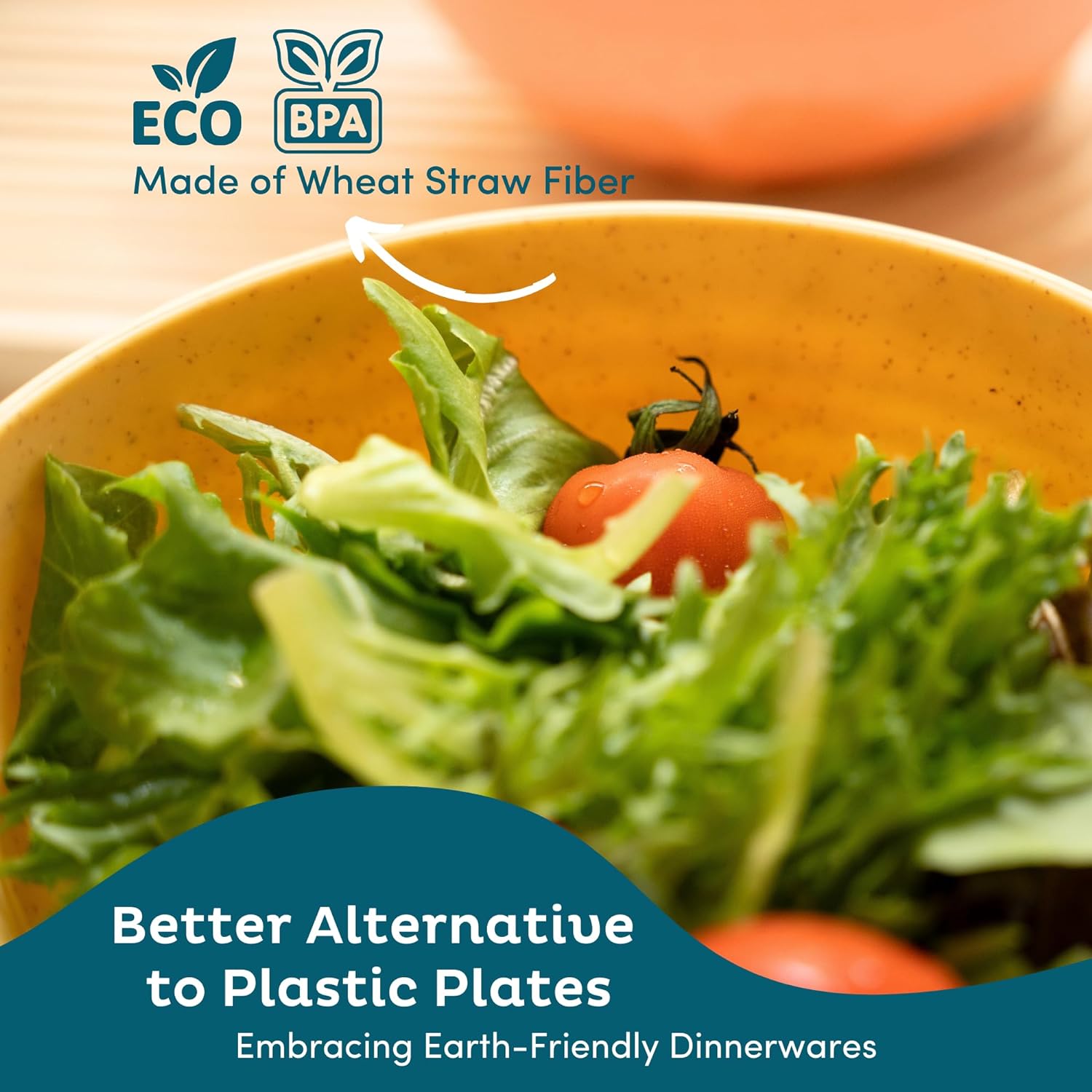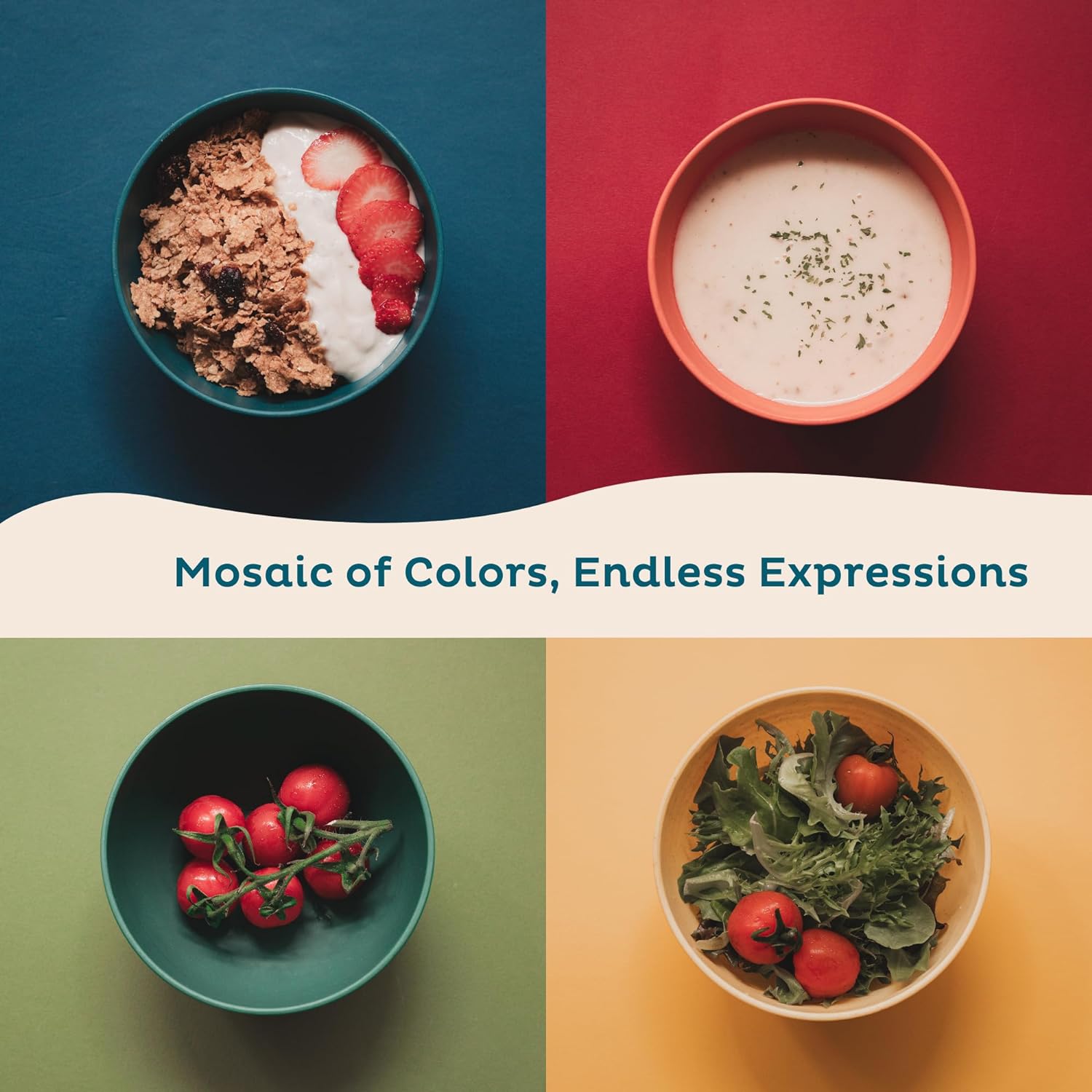 Come in a set of 8 dinner bowls, available in four exciting colorful themes, adding a splash of fun to your meals to make a stylish statement while embracing reusability. Crafted from renewable wheat straw fibers, our bowls are non-toxic and BPA-free.